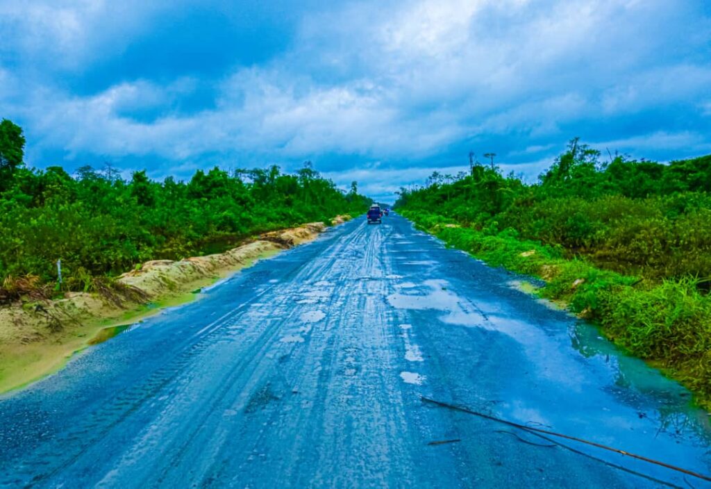 The stretch of the Ngo-Atlantic axis of the Ngo-Atlantic-Oyorokoto Road in Andoni Local Government Area during an inspection visit to the project site on Tuesday, October 28, 2025.